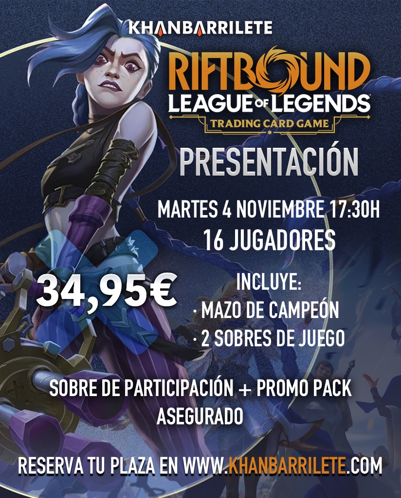 Presentación de Riftbound, 1 reserva por cliente, cualquier reserva de más de una plaza será cancelada