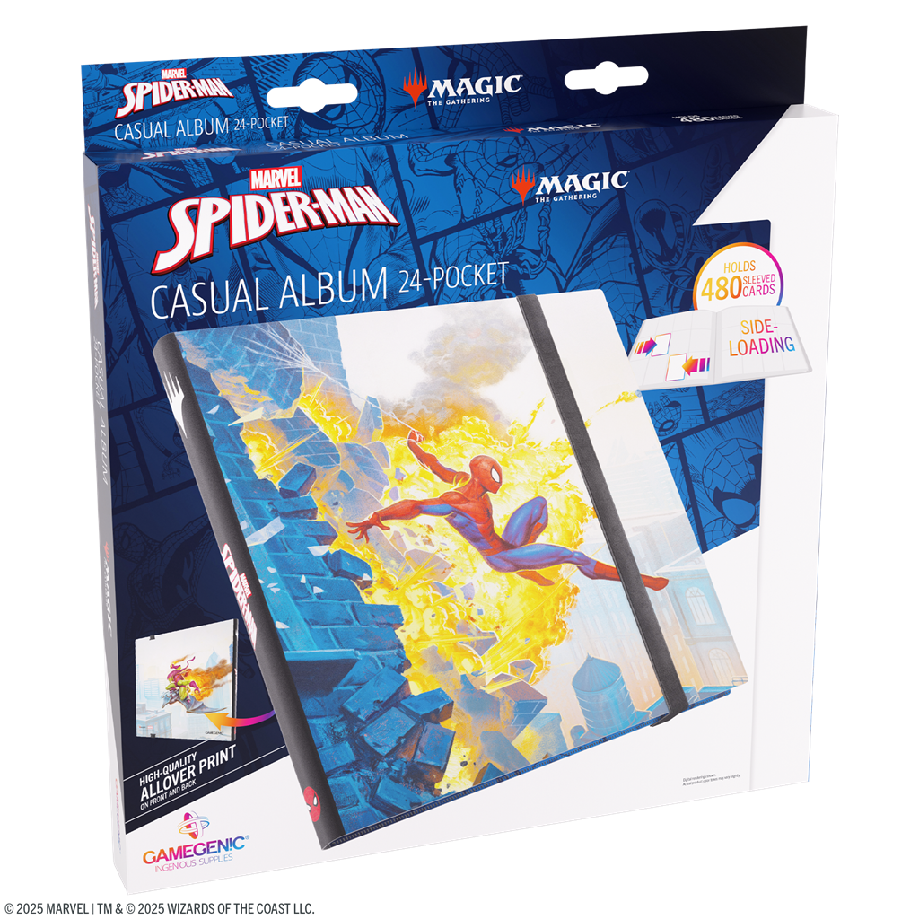 El álbum 24-Pocket Casual Album con licencia oficial es una manera elegante y práctica de organizar tus colecciones de cartas. Este álbum tiene unas tapas coloridas, con ilustraciones icónicas del juego impresas de gran calidad. Tiene capacidad para 20 páginas de 24 bolsillos de carga lateral, de manera que la capacidad total del álbum es de 480 cartas con doble funda. Los 4 bolsillos por fila son perfectos para playsets. Las páginas negras y la banda elástica que lo completan lo convierten en un accesorio muy elegante. Gracias a esta banda elástica ancha con costuras reforzadas, el álbum queda completamente cerrado, de manera que las cartas se mantienen a salvo.