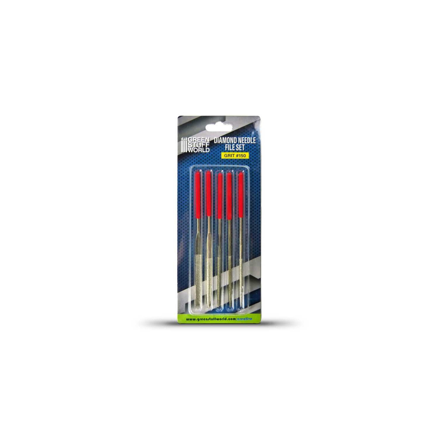 Este pack contiene 5 limas diamantadas de formas diferentes: redonda, triangular, plana cuadrada y medio-circulo.